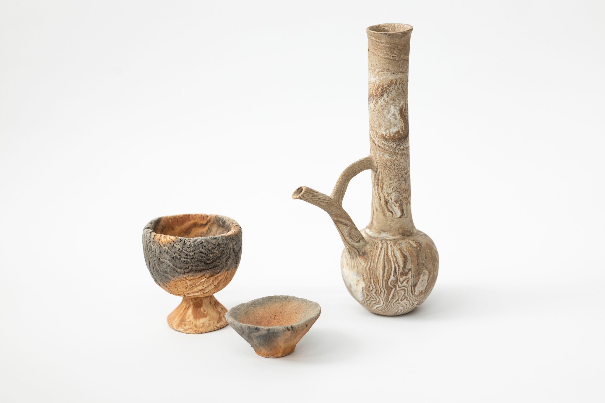 I divided the soil I collected into five stages: soil, clay, bisque-firing (a state that can still absorb water), and high-temperature firing (sintering), trying to present the sense of healing I felt during these processes. This is like the living states of earth, as well as the faces of my life.