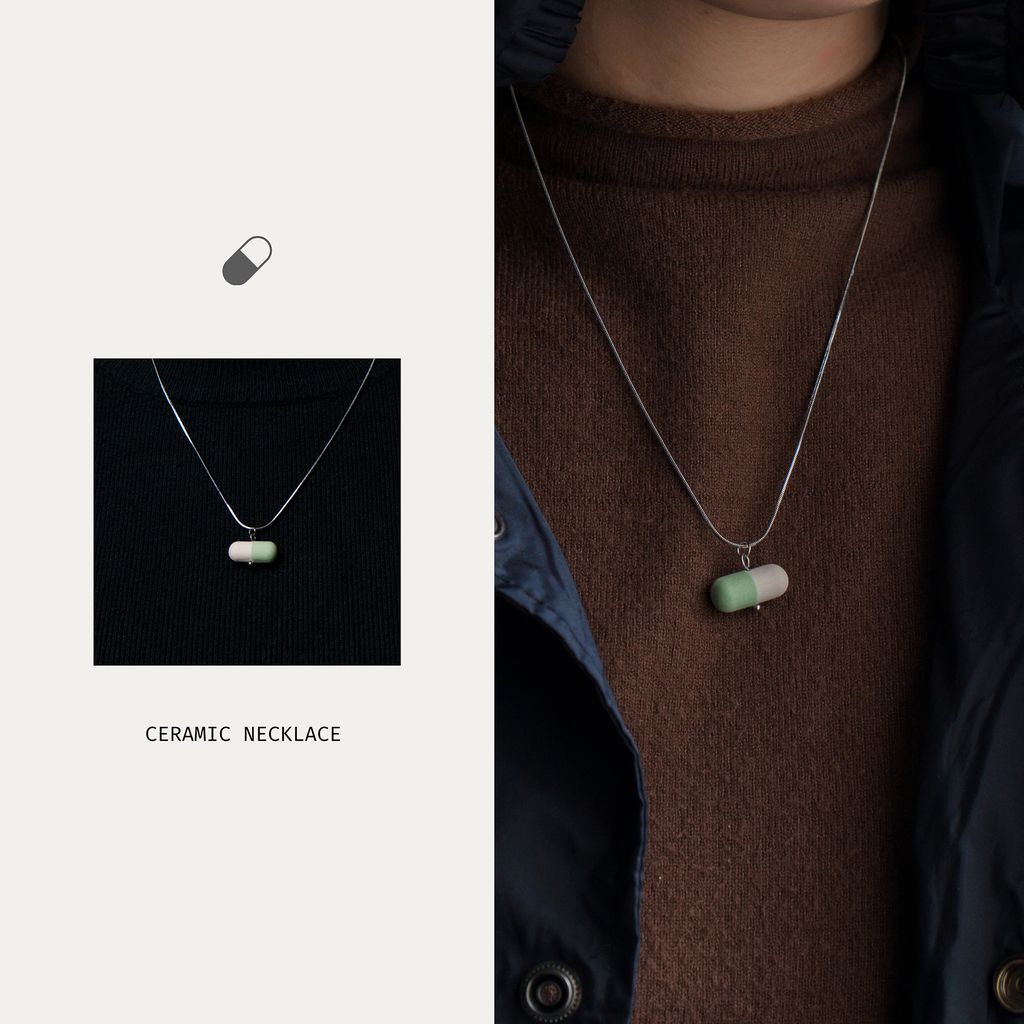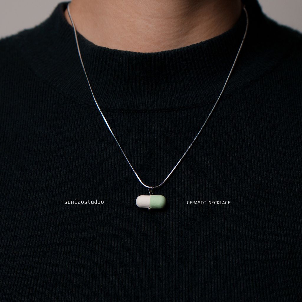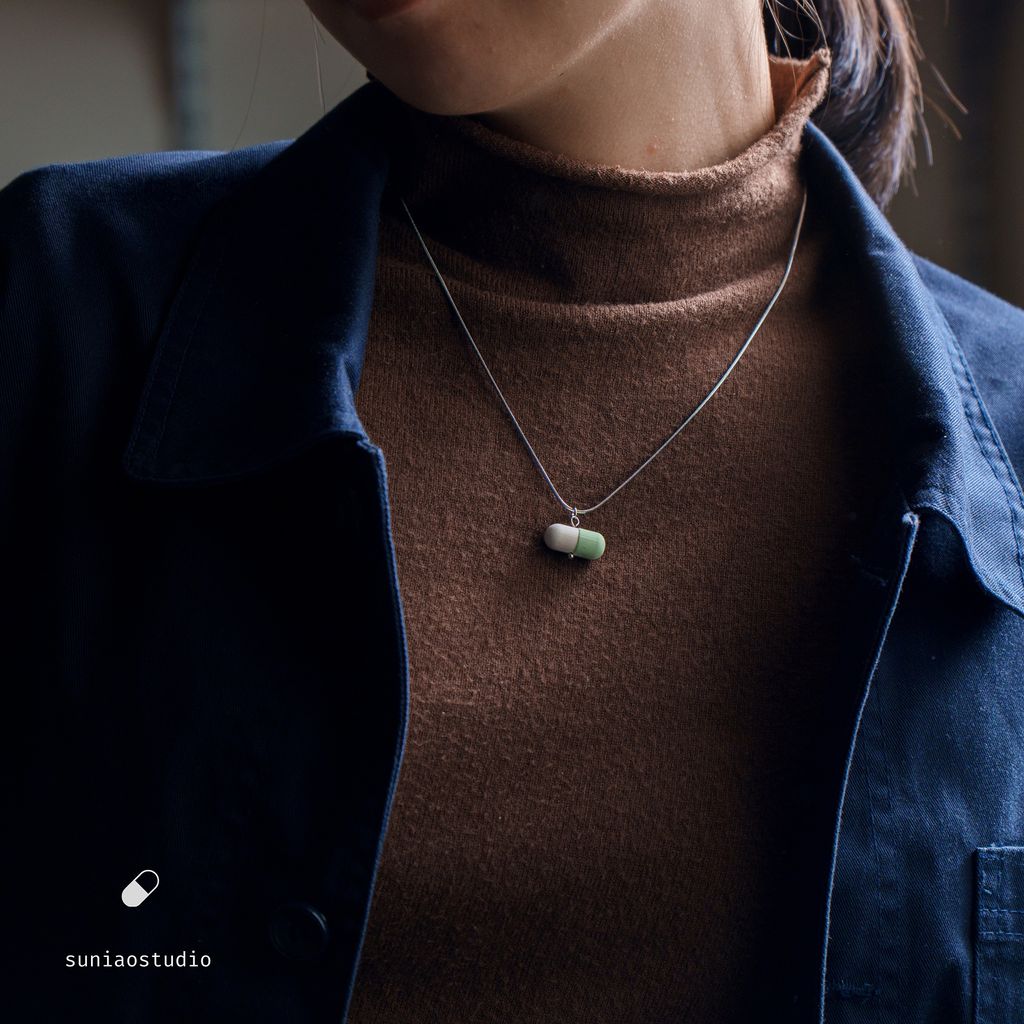 森蔦/陶飾品-藥丸系列項鍊(淺綠)